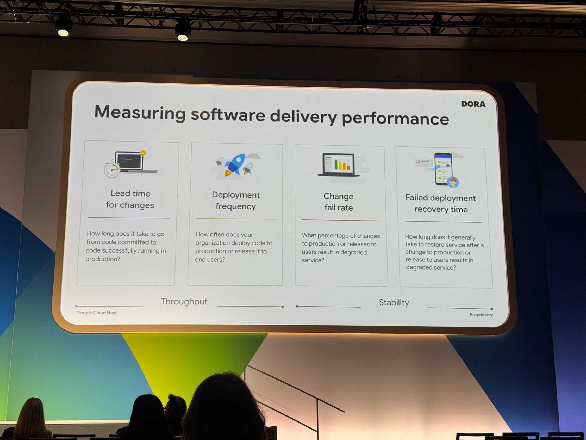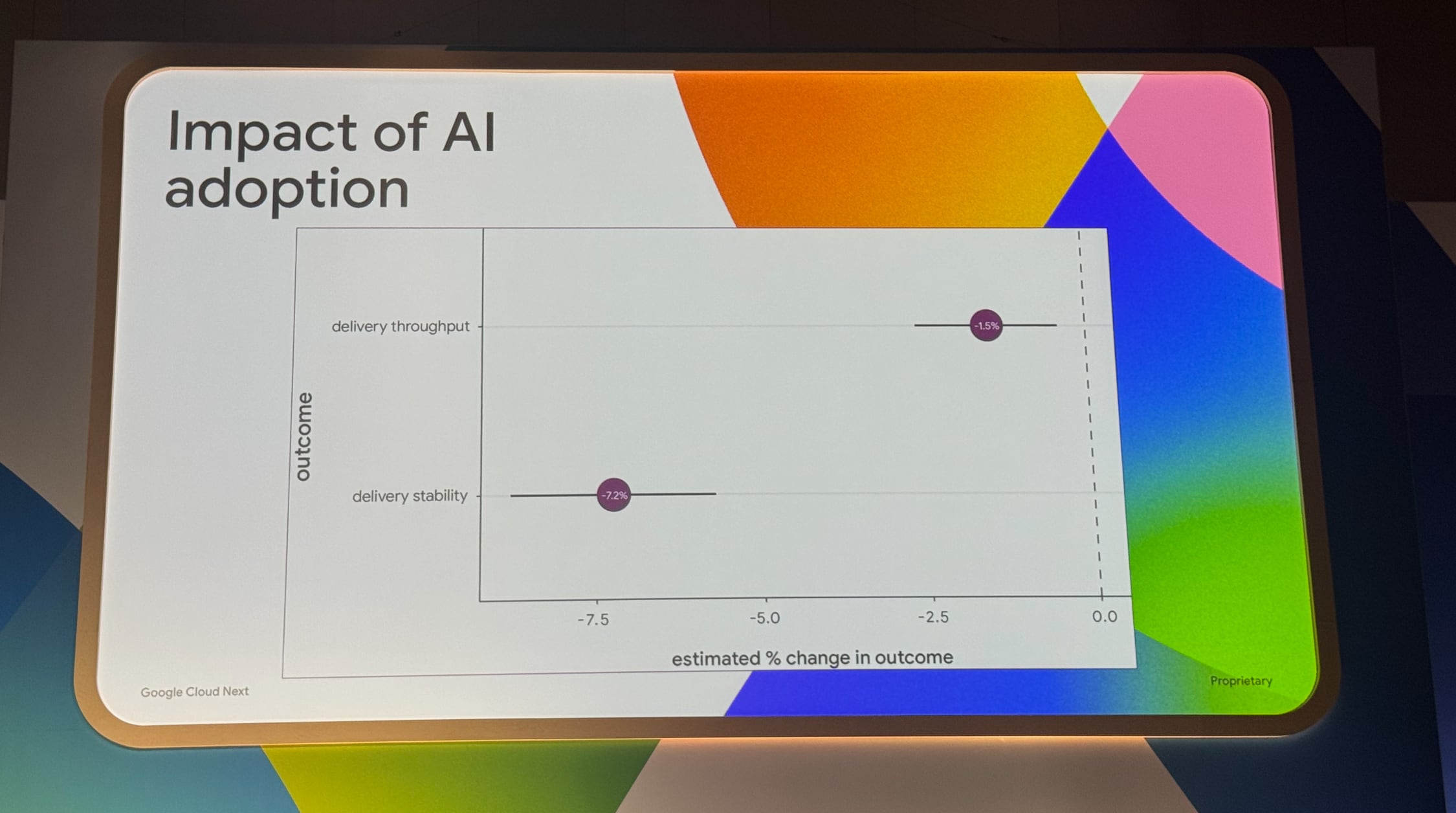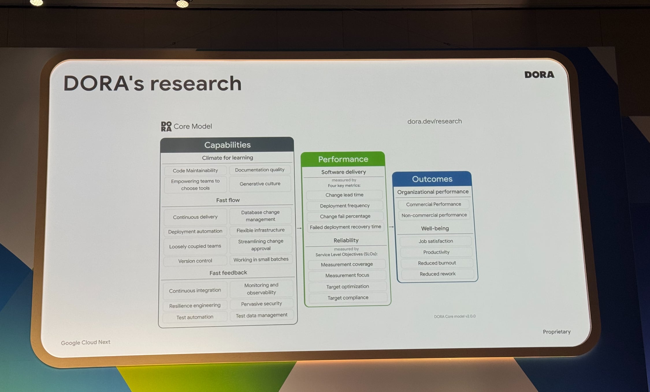 이 발표는 소위 DORA라고 부르는 DevOps Research and Assessment의 4가지 메트릭과 DORA 보고서를 통해 AI가 어느 정도 영향을 주는지 설명하는 세션이었다.