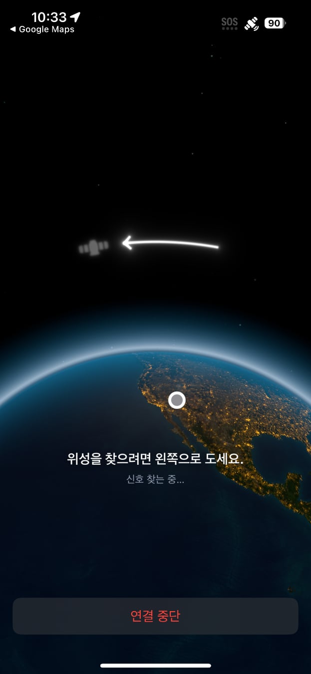 전화가 되지 않는 지역에 가니 재미난 경험을 했는데 미국에서는 아이폰이 위성 전화가 되기 때문에 전화가 끊기니 SOS로 바뀌고 위성을 사용할 수 있다고 나왔다. 메시지 앱을 켜니까 바로 위성을 찾기 시작했는데 신기하게 화면에 위성 방향으로 움직이라고 안내해 준다.