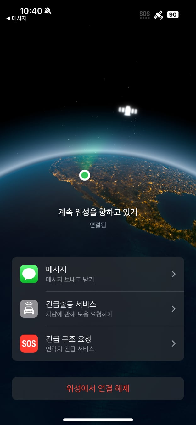 위성 방향을 보고 있으면 연결되고 문자를 보낼 수 있게 된다. 그래서 직장 동료와 문자 테스트를 해봤는데 한국 번호라 그런지 다른 이유가 있는 건지 문자가 가지 않았다. 이런저런 확인을 하다가 iMessage도 위성을 사용할 수 있는 걸 깨달았는데 평소 인터넷이 될 때와 다르게 문자가 iMessage로 전환되진 않았다. 그래서 중간에 인터넷이 될 때 iMessage로 서로 연결해 놓은 다음에 다시 전화가 끊기는 지역에 갔을 때 위성으로 보내보니 메시지가 아주 잘 갔다. 화면에 안내나 경험도 꽤 좋았고 음영지역이 많은 미국에서는 꽤 유용한 기능이라는 생각이 들었다.