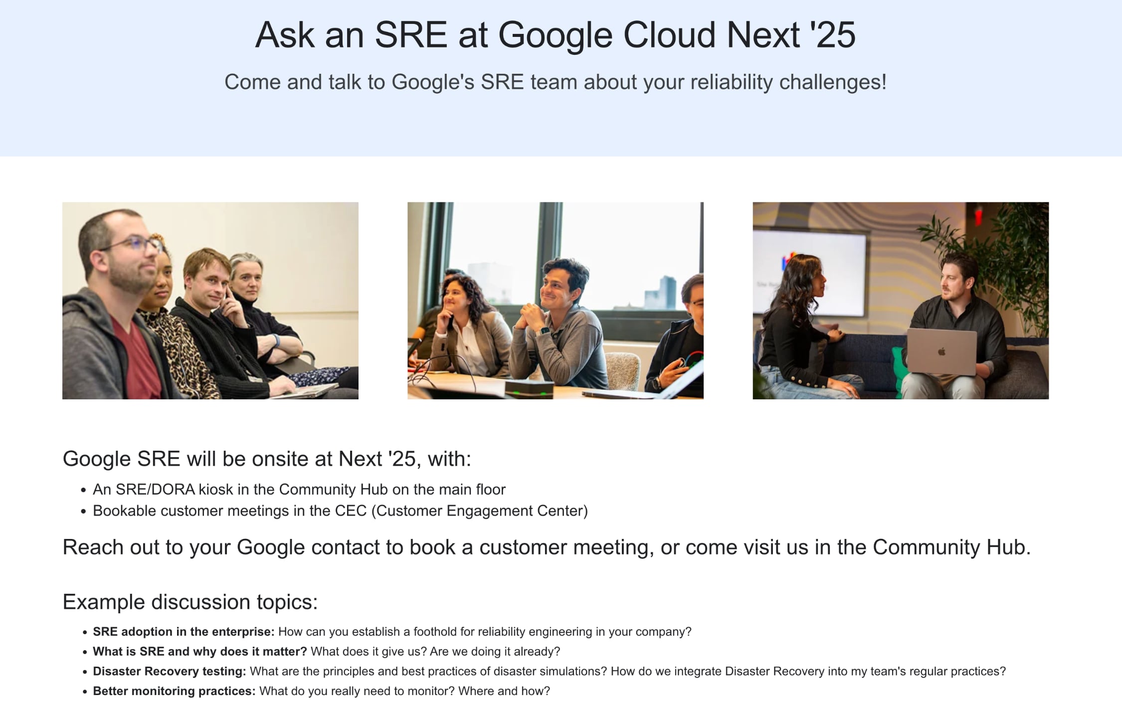 Google Cloud Next에 참석하기로 한 뒤에 Twitter를 하다가 Ask an SRE at Google Cloud Next '25라는 링크를 봤다.